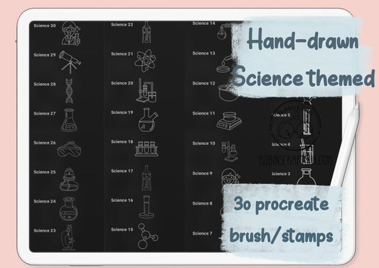 Science themed stamps -30 stamps - kawaii - procreate stamps/brushes - digital use only - procreate
