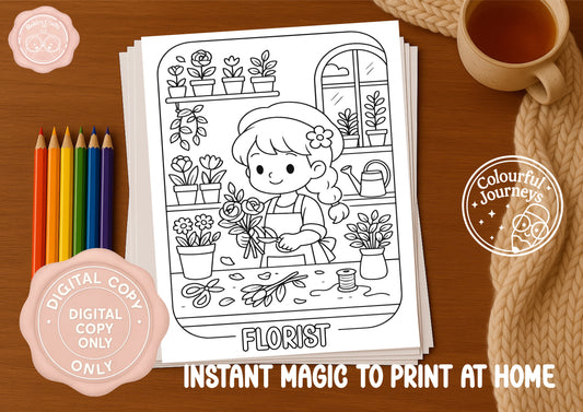 Cute at Work Colouring Book | 30 Illustration Printable Digital Download | Cute Job themed