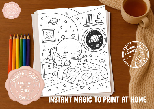 Cute space Coloring Book | 30 Illustration Printable Digital Download | Cute Space themed