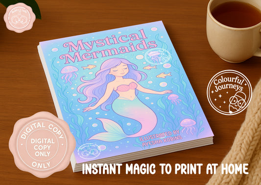 Mythical Mermaids Colouring Book | 30 Illustration Printable Digital Download | Mermaid themed