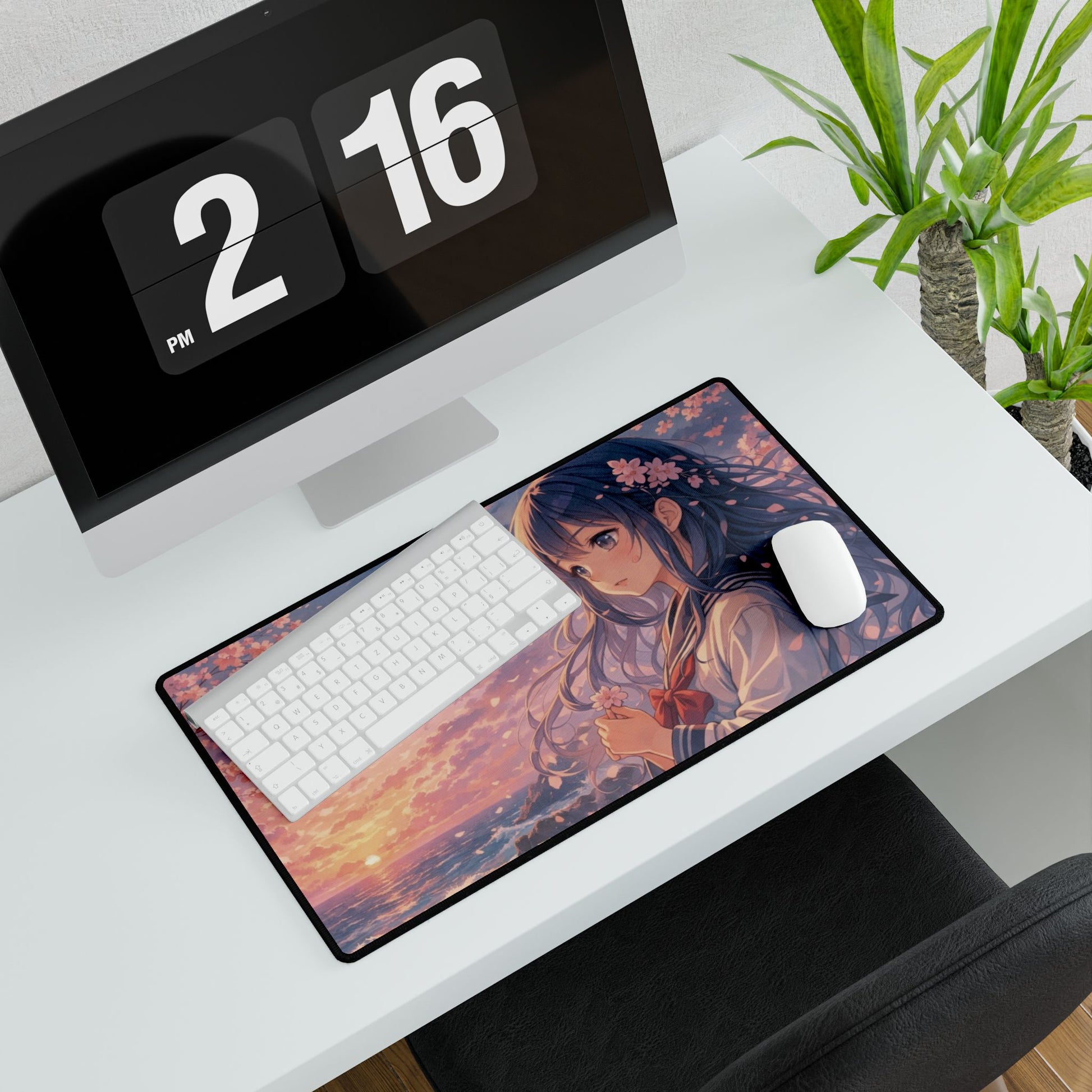 Anime Cherry Blossom Sunset Desk Mat — Large Gaming Mousepad
