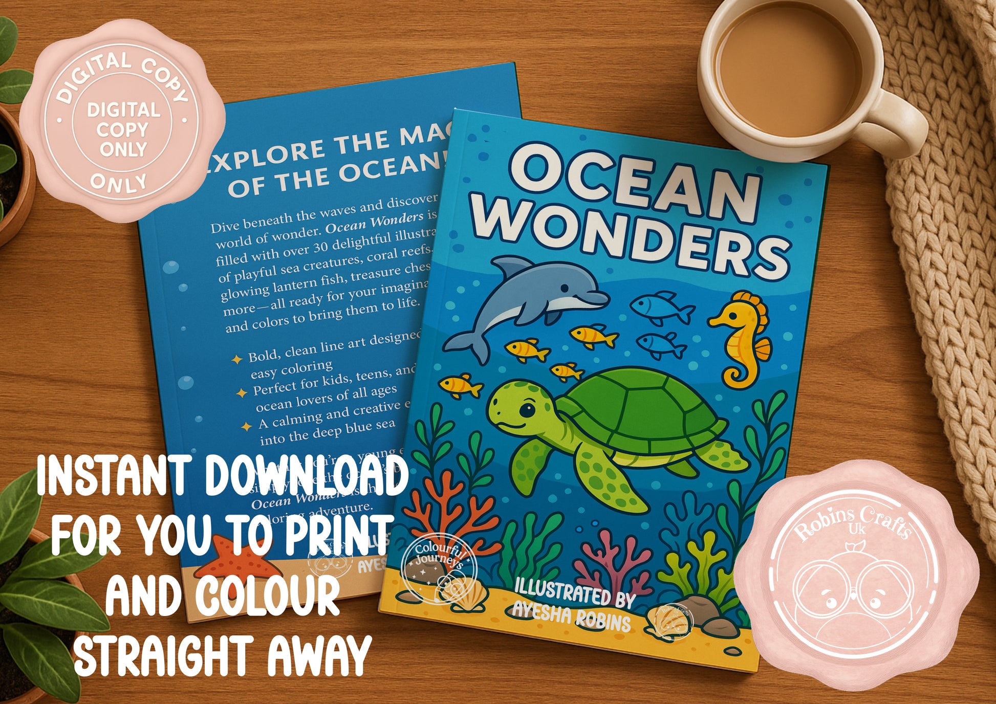 Ocean Wonders Colouring Book | 30 Illustration Printable Digital Download | Ocean themed