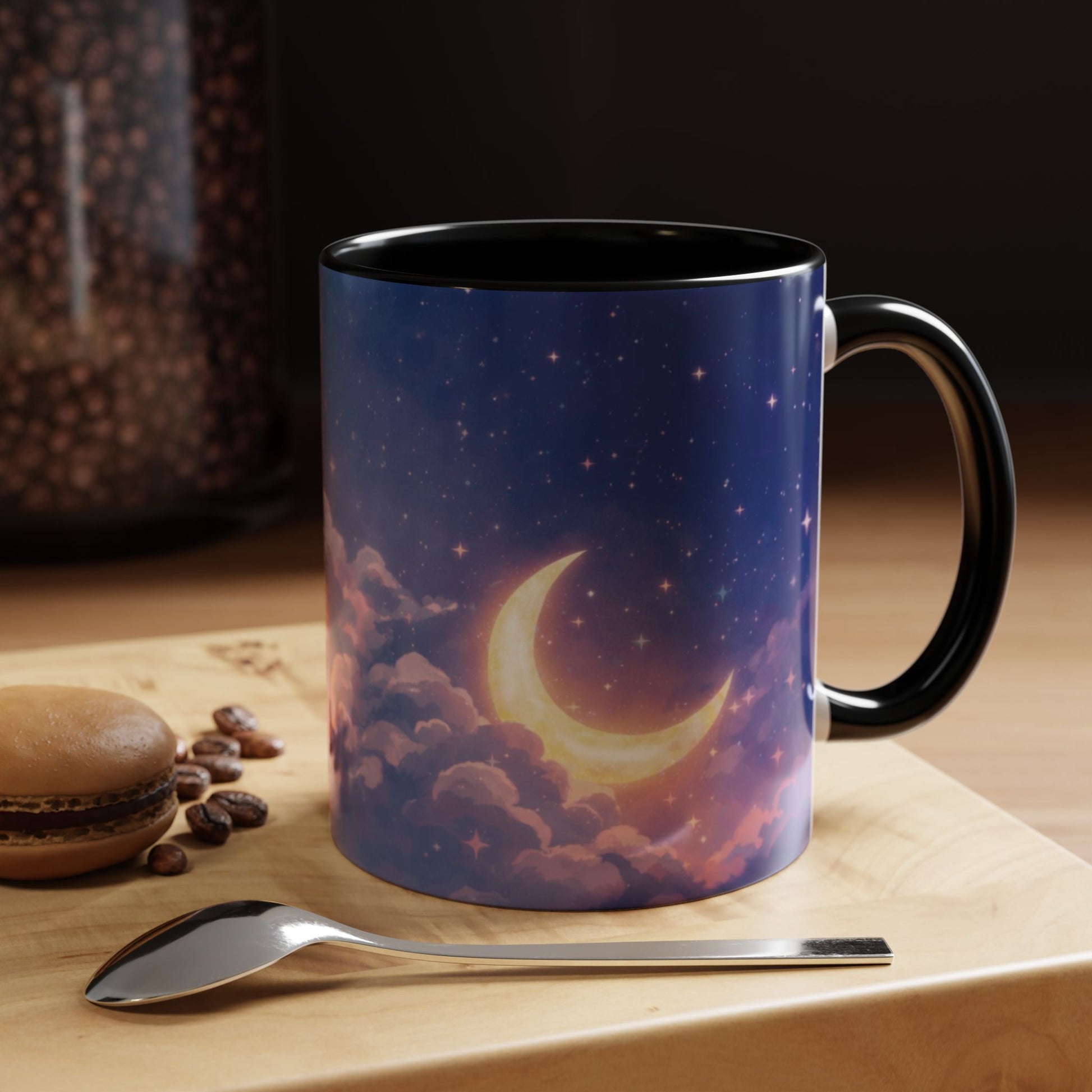 Crescent Moon Cloud Coffee Mug — Dreamy Night Sky Accent Mug