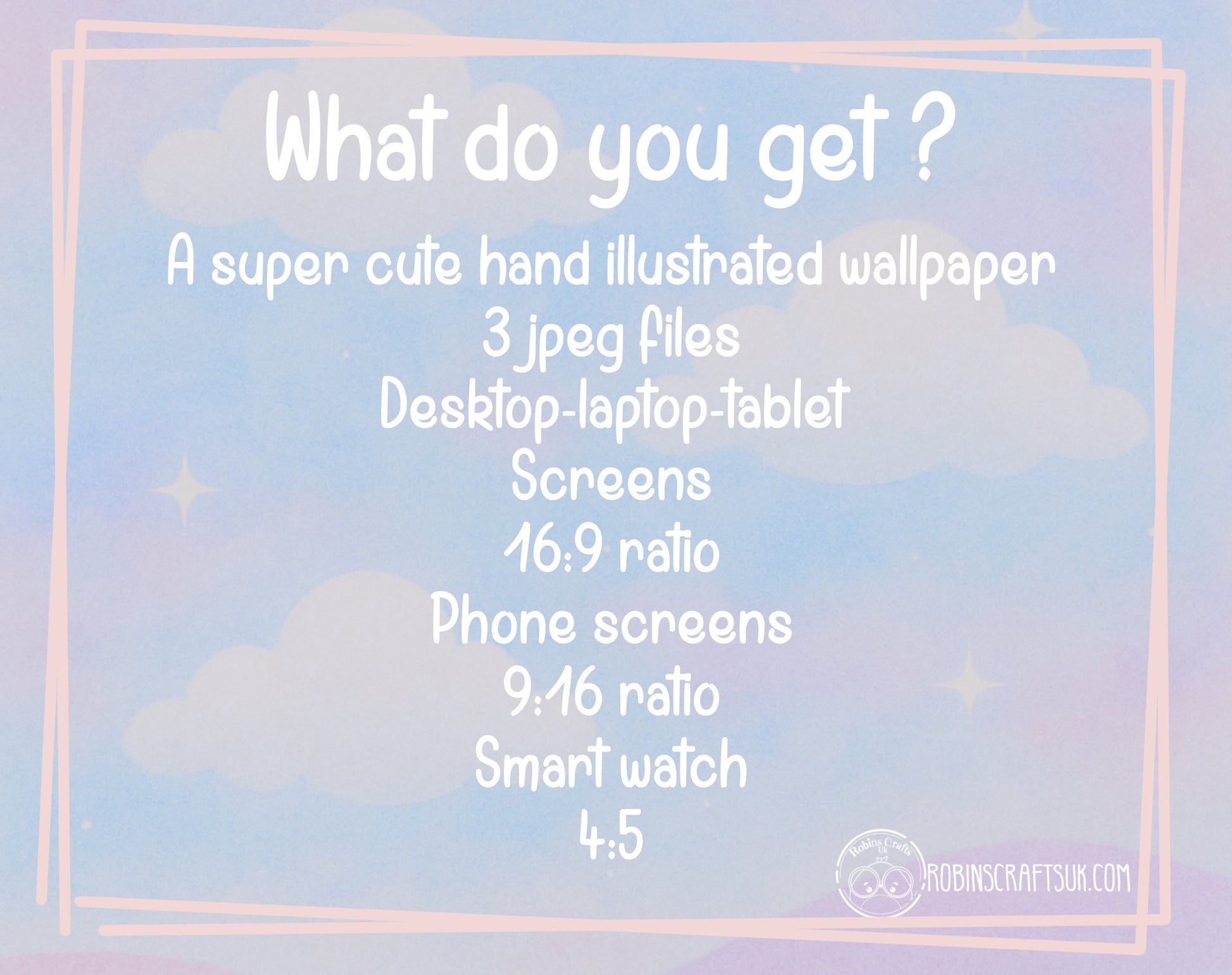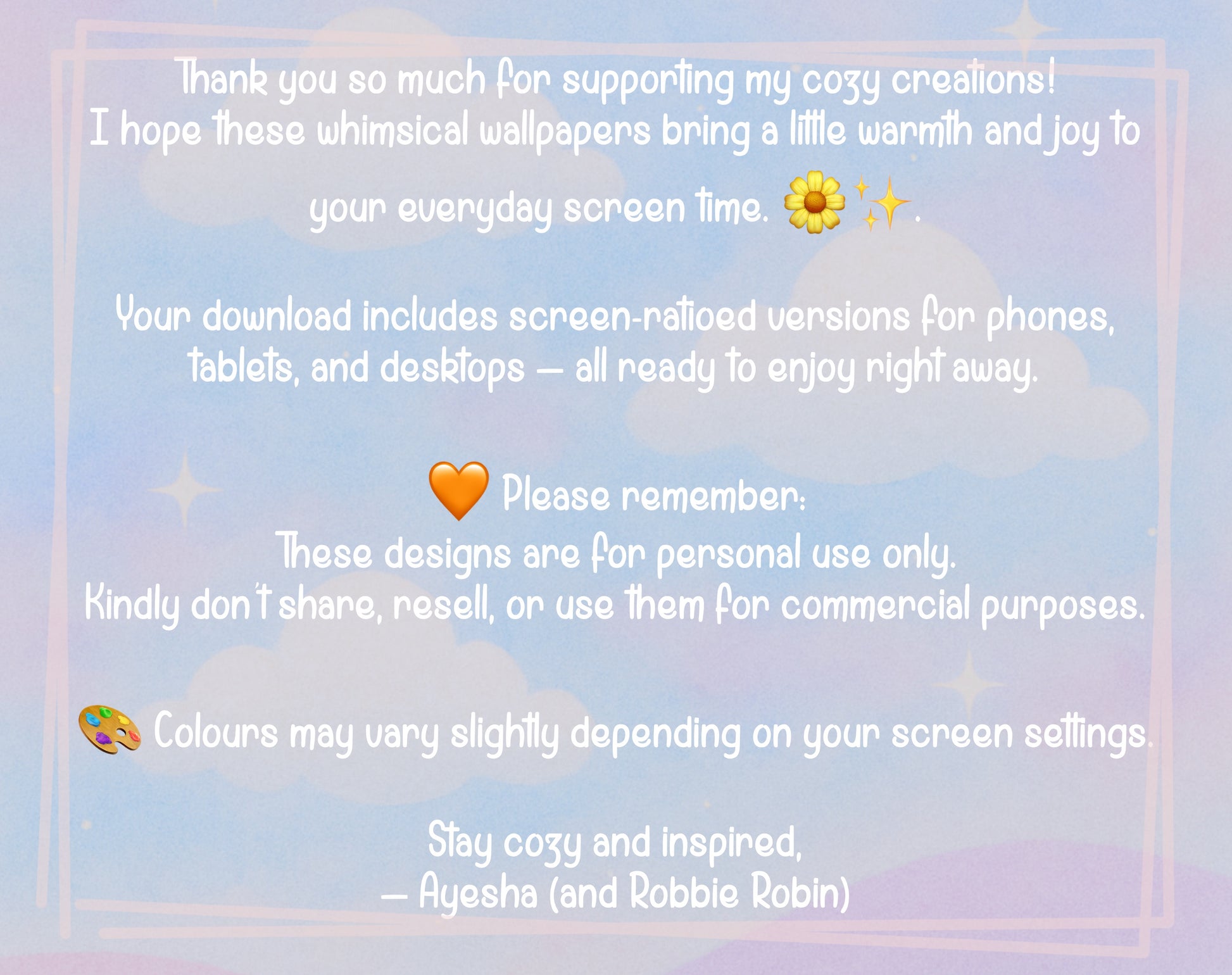 Designed in a soft, hand-illustrated style with a magical storybook feel, these wallpapers are perfect for phones, tablets, desktops — and even smartwatches!