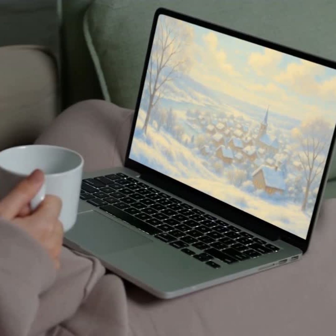 Winter village wallpaper – illustrated Digital Wallpaper Download | Art wallpaper